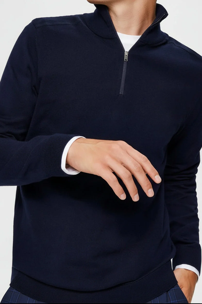 Dieser Pullover bietet mit seinem hohen Kragen und dem Half-Zip-Verschluss eine Kombination aus stilvollem Look und praktischem Tragekomfort. Seine lange Ärmel und die gerippten Bündchen sorgen für eine angenehme Passform im Alltag. Das Material aus 50% Baumwolle und 50% Bio-Baumwolle macht ihn besonders weich und nachhaltig zugleich.
