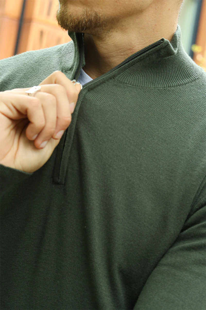 JEFF FRANKIE HALF ZIP KNIT Army