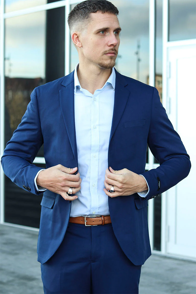 Dieser Franco Blazer besticht durch seinen super schlanken Schnitt, der für eine moderne und elegante Silhouette sorgt. Das Modell verfügt über ein klassisches Revers mit Kerbkragen und eine praktische Knopfverschlussfront. Im Inneren bieten Taschen zusätzlichen Stauraum, ideal für kleinere Gegenstände. Das tiefblaue Design mit dem Farbton „Medieval Blue“ verleiht dem Blazer einen zeitlosen und stilvollen Look. Hergestellt aus einem innovativen Materialmix, bei dem recycelter Polyester im Vordergrund steht, verbindet er Nachhaltigkeit mit Komfort.