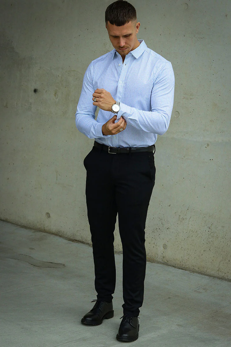 - Komfortable und flexible Passform: Dieses hellblaue Komfort-Oberhemd besteht aus 100 % Baumwolle, was Atmungsaktivität, Langlebigkeit und einen natürliches Tragegefühl garantiert. Außerdem ist das Herrenhemd dehnbar, was es ideal für einen vielseitigen und flexiblen Einsatz macht - ob im Büro, am Abend oder einfach überall dort, wo Komfort und Bewegungsfreiheit gefragt sind.