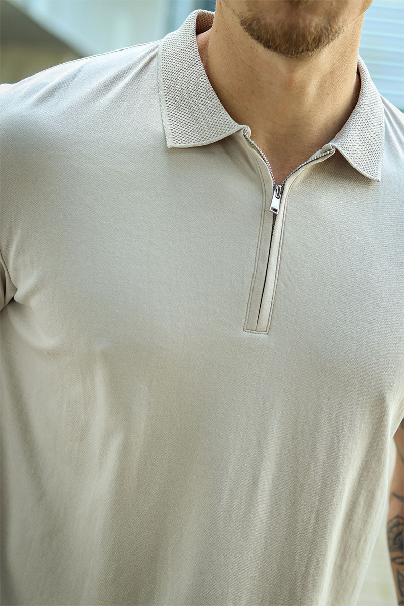 Selected Fave Zip Polo SS Oatmeal