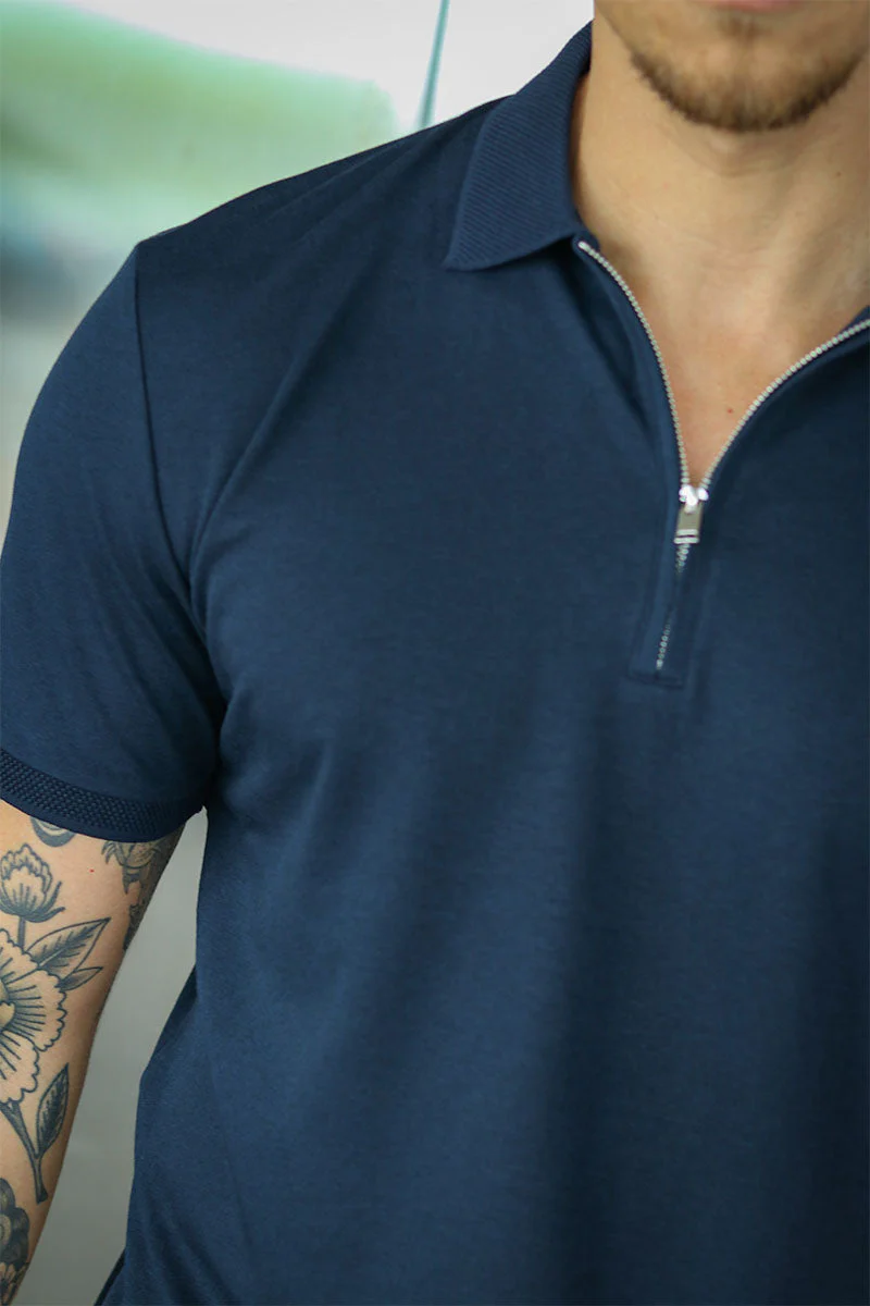 Selected Fave Zip Polo SS Sky Captain
