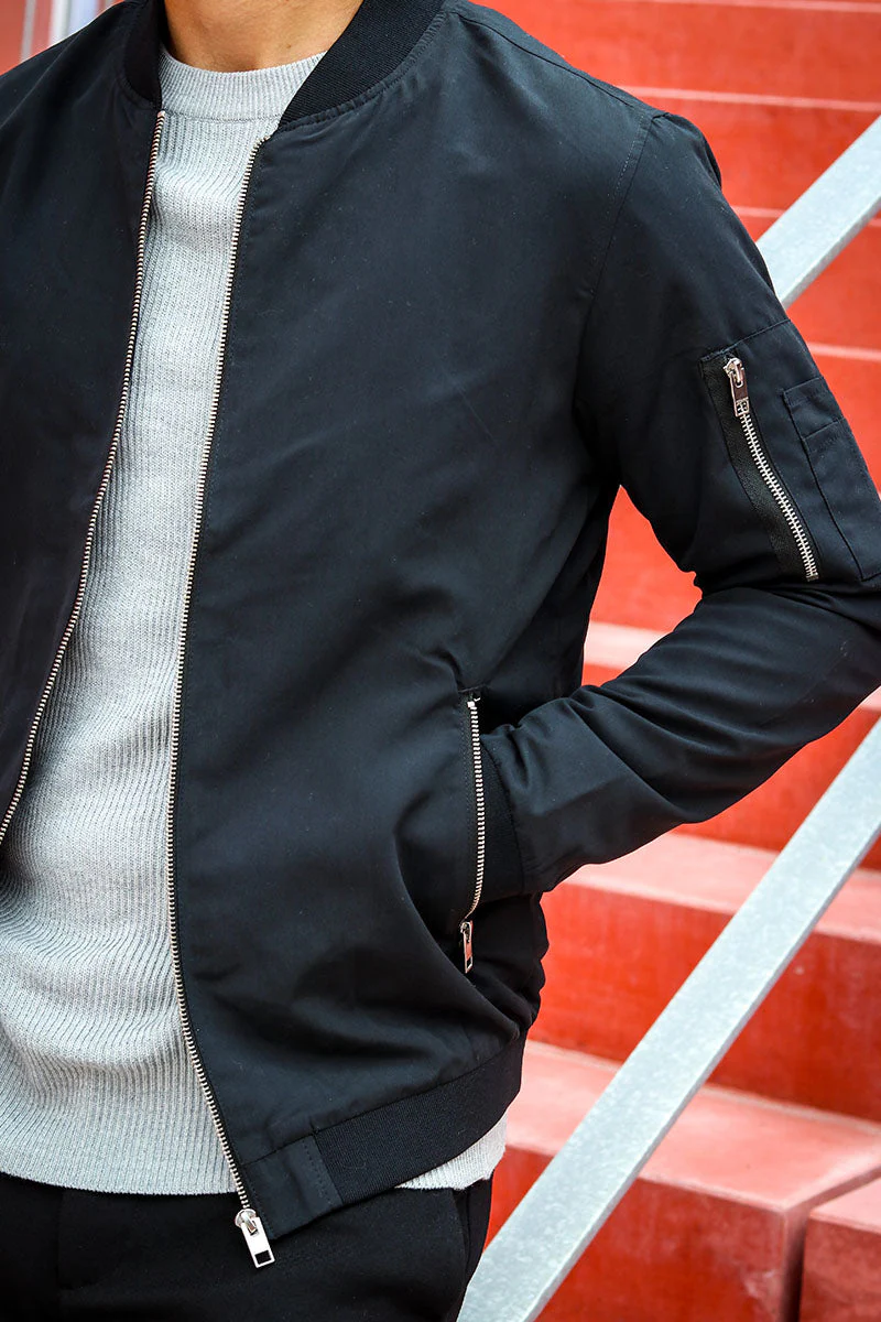Diese Bomberjacke bietet einen lässigen Look für den Alltag und überzeugt durch ihren leichten Stoff, der dünn und luftig für ein angenehmes Tragegefühl ist. Der Baseballkragen und die langen Ärmel sorgen für eine klassische Optik, während der Reißverschluss das An- und Ausziehen erleichtert. Praktische Fronttaschen sowie eine Ärmeltasche mit Reißverschluss bieten Platz für Kleinigkeiten. Die kurze Passform macht die Jacke vielseitig kombinierbar und perfekt für den Frühling geeignet.