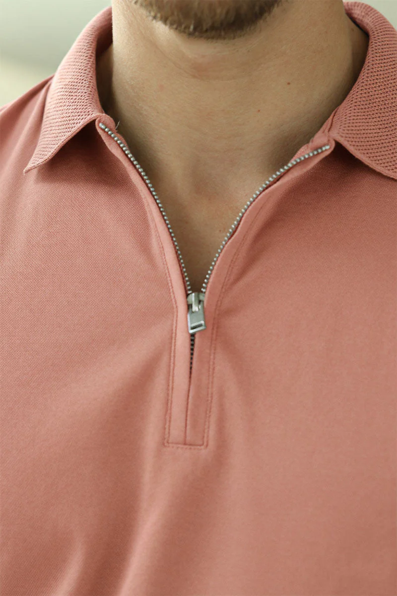 Selected Fave Zip Ss Polo Rose Dawn